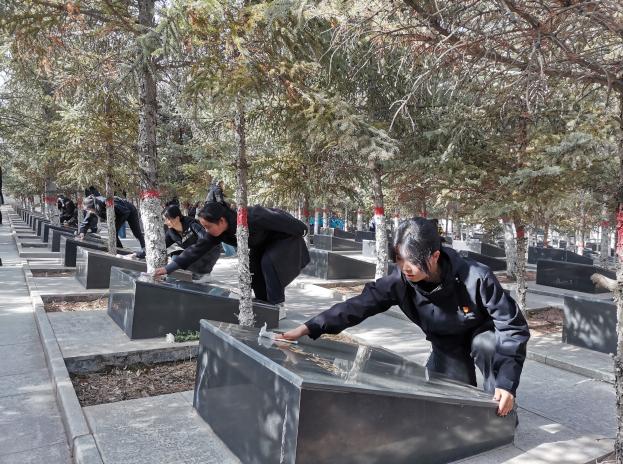 活动中,全体师生在庄严肃穆的革命烈士纪念碑前整齐列队,通过敬献花篮、集体默哀深切表达对英烈的崇敬与哀思。随后,党员面向党旗重温入党誓词,团员面向团旗重温入团誓词,铿锵誓言回荡陵园,彰显青年一代传承革命精神的坚定信念。随后,全体师生手持白菊,依次缓步至烈士墓碑前鞠躬献花,并细心擦拭墓碑尘土,以行动践行守护英烈荣光的责任。活动最后,全体师生有序参观中国工农红军西路军纪念馆,通过珍贵文物、影像资料和讲解员的生动讲述,重温西路军浴血奋战的英雄史诗,深刻感悟“信仰如山、初心如磐”的精神力量。