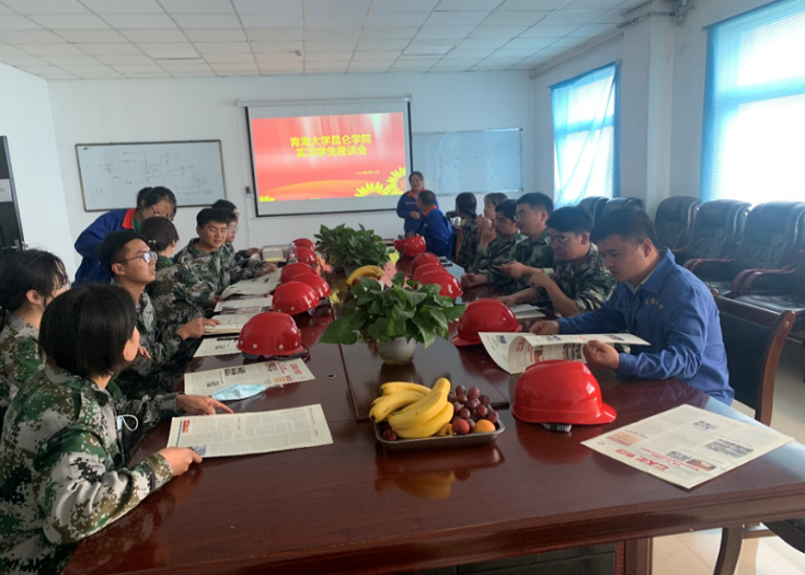 会上,张凯部长对本次活动的目的和出席人员进行了介绍,领学了习近平总书记在青海考察时的重要讲话精神,结合氮肥党支部优秀员工成长经历、企业对新时代人才要求以及实习心得等方面进行了沟通和交流,号召大学生快速融入企业,实现社会价值和个人价值双赢。随后,综合部潘部长给同学们介绍了企业概况、海角视频、党建工作等内容。