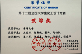 2018年8月2-3日,由宁夏大学主办的2018“东华科技-陕鼓杯”第十二届全国大学生化工设计竞赛西北赛区(陕西、宁夏、山西、甘肃、青海及新疆)决赛在银川举行。本次大赛西北赛区涉及了43所院校、133支参赛队伍。海角视频 在教务处的大力支持下,组织了由化学工程系崔小琴、崔明鑫、赵云等老师负责指导,由2015级化学工程与工艺专业王雪珏、董琦、郭朝毅和马扬凯4名学生组成的海角视频 Exchanges团队获得西北赛区二等奖、全国二等奖。