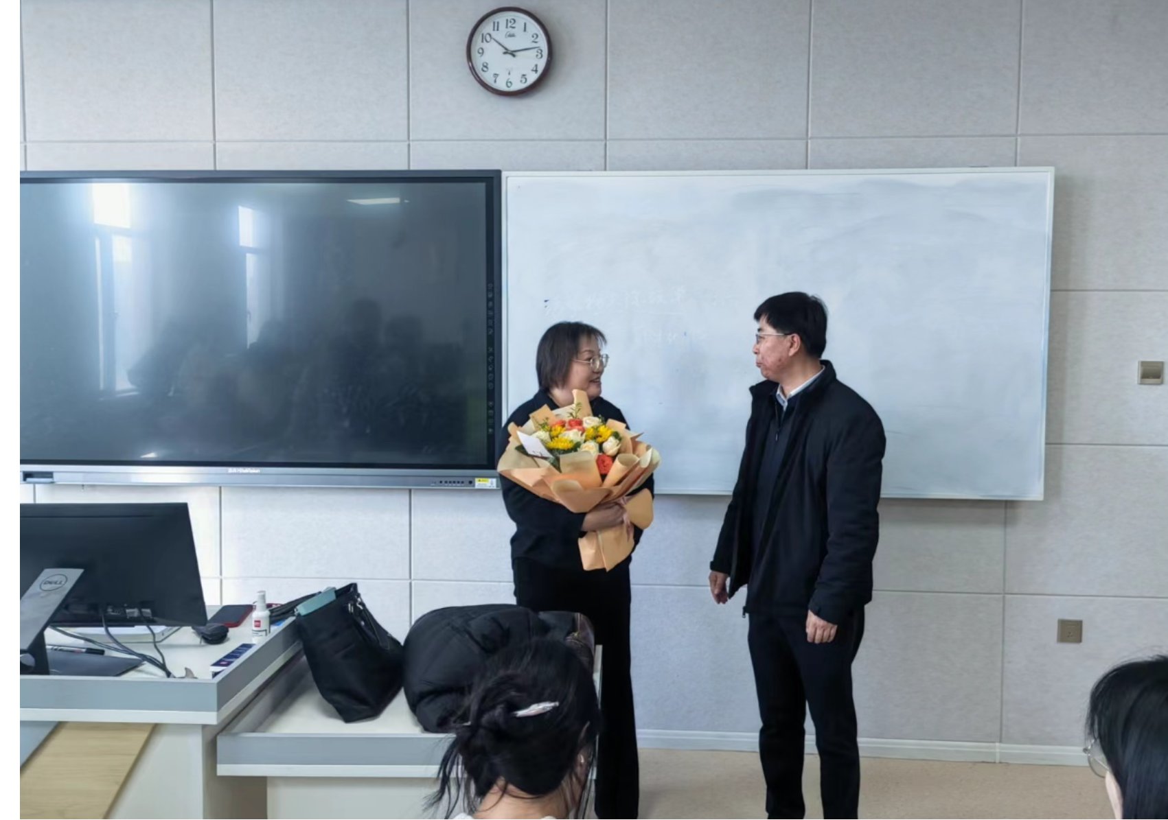 在课间休息时间,校党委副书记、常务副校长任延明来到课堂教学一线,向王晓同志送上了鲜花和祝福,送去了学校的关怀和温暖。任延明常务副校长表示,在“三八节”到来之际,代表学校对一线优秀女教职工进行慰问,对于进一步增强广大女教师的荣誉感、归属感、使命感,激励她们无私奉献、不懈奋斗,具有十分重要的意义。他强调,广大女教职工立足各自岗位,施展聪明才智,挥洒辛勤汗水,在教学、科研、管理和服务等各个方面都发挥了重要作用,真正撑起了学校发展“半边天”,希望广大女教工在今后工作中紧紧围绕学校发展大局,脚踏实地、开拓进取,继续发挥聪明才智,为学校各项事业发展做出新贡献。
